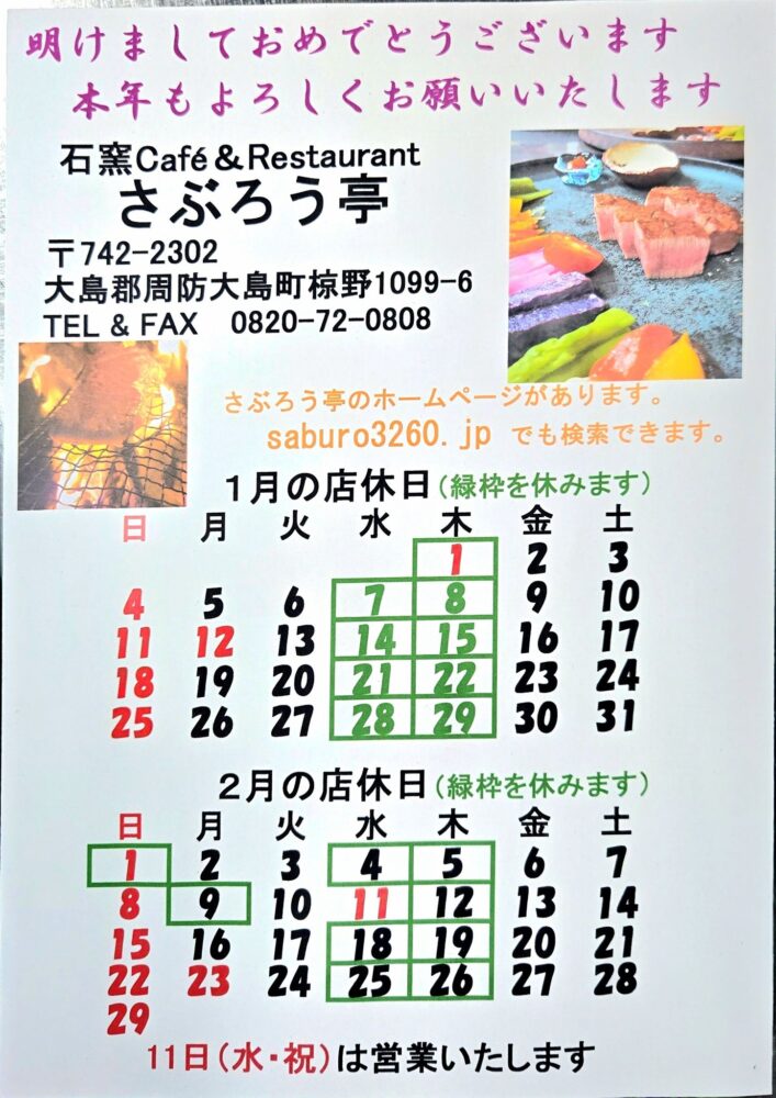 12月・1月の店休日を更新しました